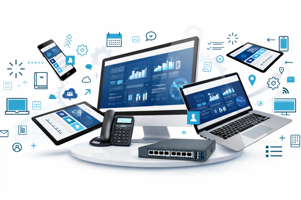Infrastructures réseau fiables : switchs managés, Wi-Fi professionnel, accès sécurisés pour sites multi-locaux.